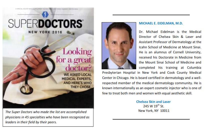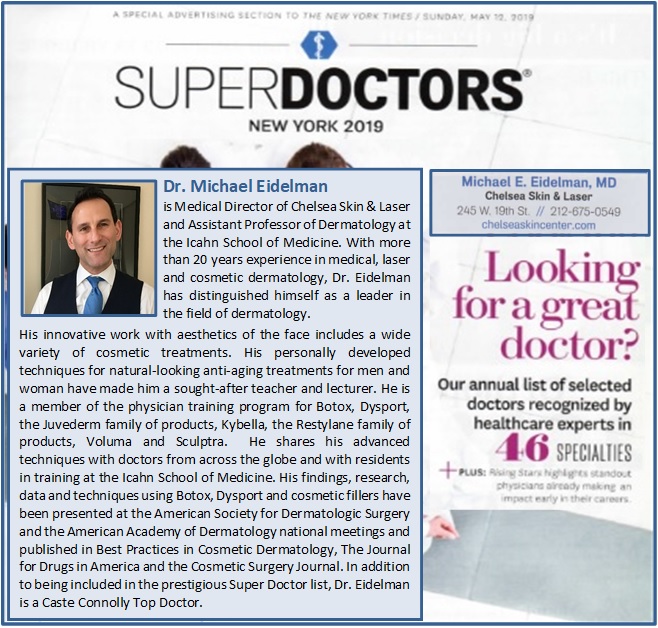 Press • Recognition • Reviews What patients say about Dr. Eidelman What patients say about Dr. Ginsberg What patients say about Chelsea Skin & Laser Click the logos below for articles of interest “Gender-specific differences matter when marketing aesthetic services to men” “How to educate men on aesthetic treatment”
